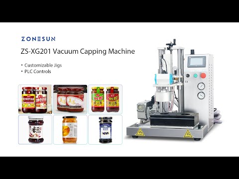 Esta es una máquina de envasado al vacío. Se utiliza para sellar tapones de rosca en botellas o frascos. Está equipado con una bomba de vacío para eliminar el aire del recipiente, lo que ayuda a almacenar los alimentos por más tiempo con una buena higiene alimentaria. Es ampliamente utilizado en la industria del envasado de alimentos.