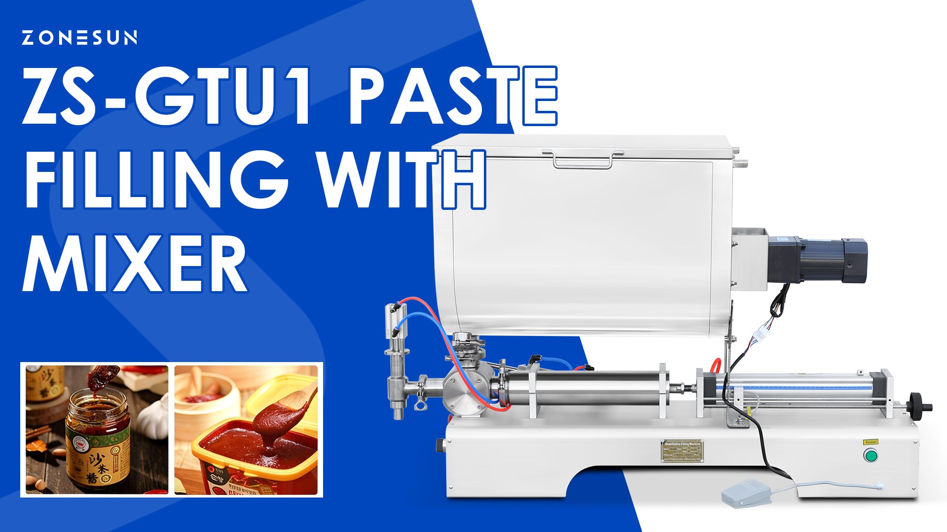 The ZONESUN ZS-GTU1 pneumatic filling machine is designed for high viscosity materials such as honey, sauces, chili sauce, bean paste, sesame sauce and so on.Equipped with a built-in mixing function, it ensures consistent texture and flow during operation. Available with 1, 2, or 4 customizable filling nozzles, this machine supports a wide range of filling volumes from 10ml to 5000ml. Its pneumatic system delivers accurate dosing with ≤1% deviation, making it ideal for food, cosmetic, and chemical industries. Compact yet powerful, it operates at speeds of 8–25 bottles per minute and is compatible with both 110V and 220V power supplies.This one is designed with mixing function and it can mix paste automatically.