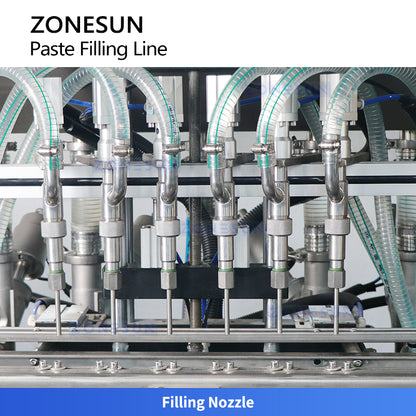 The ZONESUN ZS-FAL180G6 is an Automatic Paste Filling Packaging Line . It integrates a paste filling machine, vibrating capping machine, foil sealing machine, and labeling production line for efficient production. Featuring an automatic capping system, automatic cap feeder, and four-wheel capper, it ensures smooth operation. Ideal for lotion filling, cream bottling equipment, cosmetic filling lines, and personal care product lines, this is a reliable industrial packaging machine for stable, high-speed output.