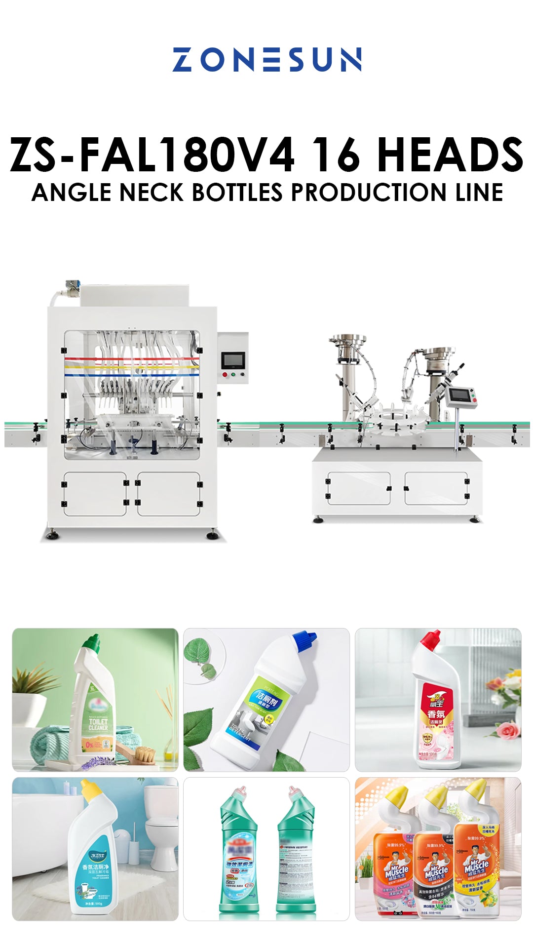 ZONESUN ZS-FAL180V4 Automatic Corrosive Liquid Filling and Capping Machine for Angle Neck Bottles Up to 3000BPH