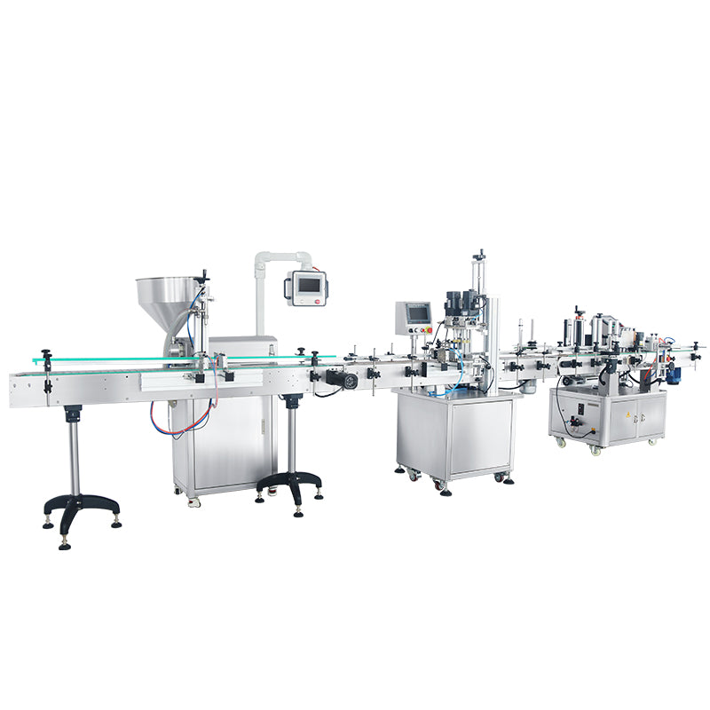 This production line is suitable for packaging paste or liquid, such as honey, cream, peanut butter, etc. The filling machine adopts a servo motor and it is available to directly set the filling volume. With a rotor pump, it can fill materials accurately. The labeling machine is customizable for single and double sides labeling.