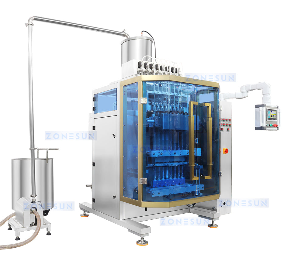 ZONESUN VFFS Liquid Bagger Monoblock Hot Sauce Vinegar Seasoning Syrups Sachet Packaging Filling and Sealing Machine ZS-FSMP8