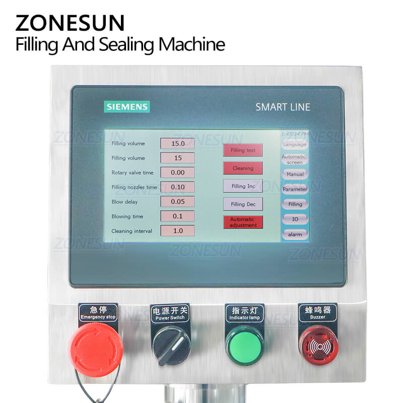 Touchscreen panel makes it convenient to set parameters like filling volume. Language of panel can be customized.