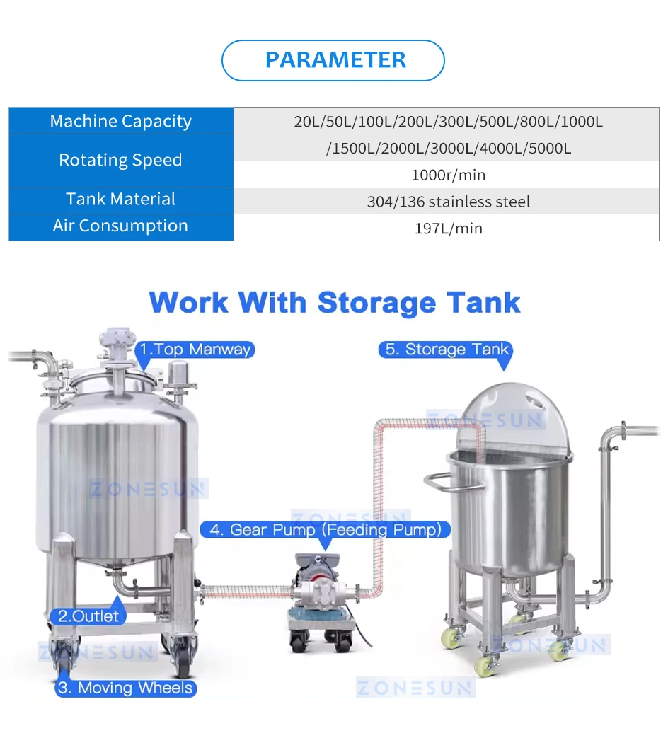 Zonesun ZS-PMT100L Pneumatic Mixer | Blender