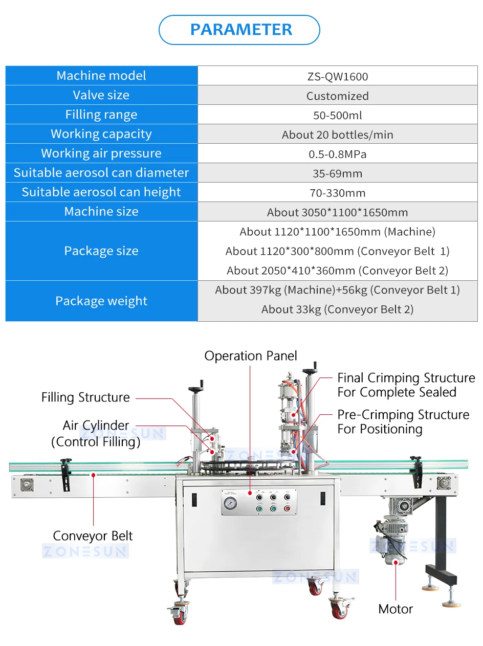 ZONESUN ZS-QW1600 Aerosol Filling Machine Spray Can Sealer